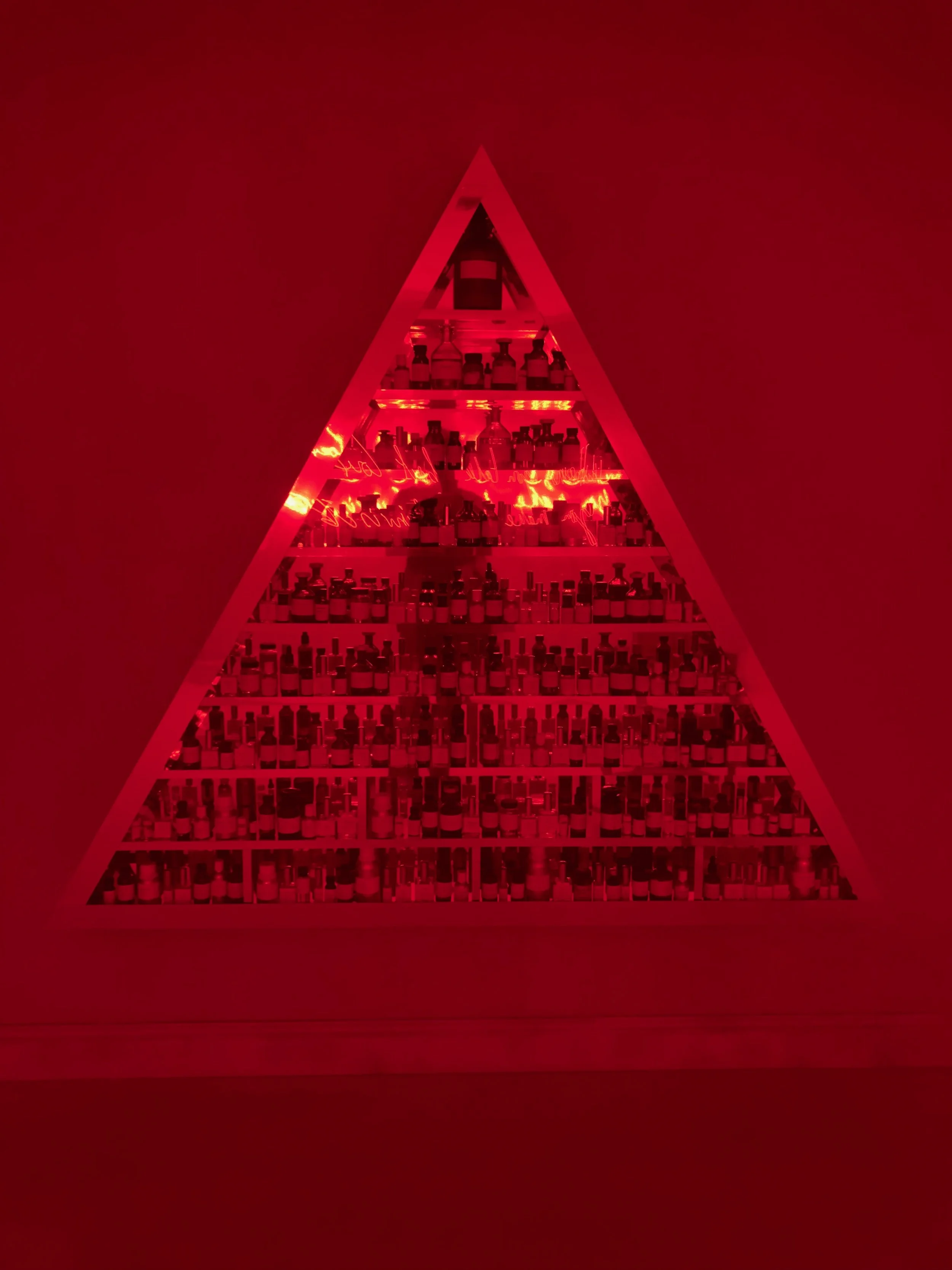 We were commissioned to design and make a fabricated exhibition triangular installation for the #beyondtheroad immersive art experience at The #Saatchi Gallery. This specific make was for the talented artisan Azzi Glasser #theperfumersstory who deconstructs the notes of the iconic Unkle scent 'Build & destroy in a shelved mirror triangle.