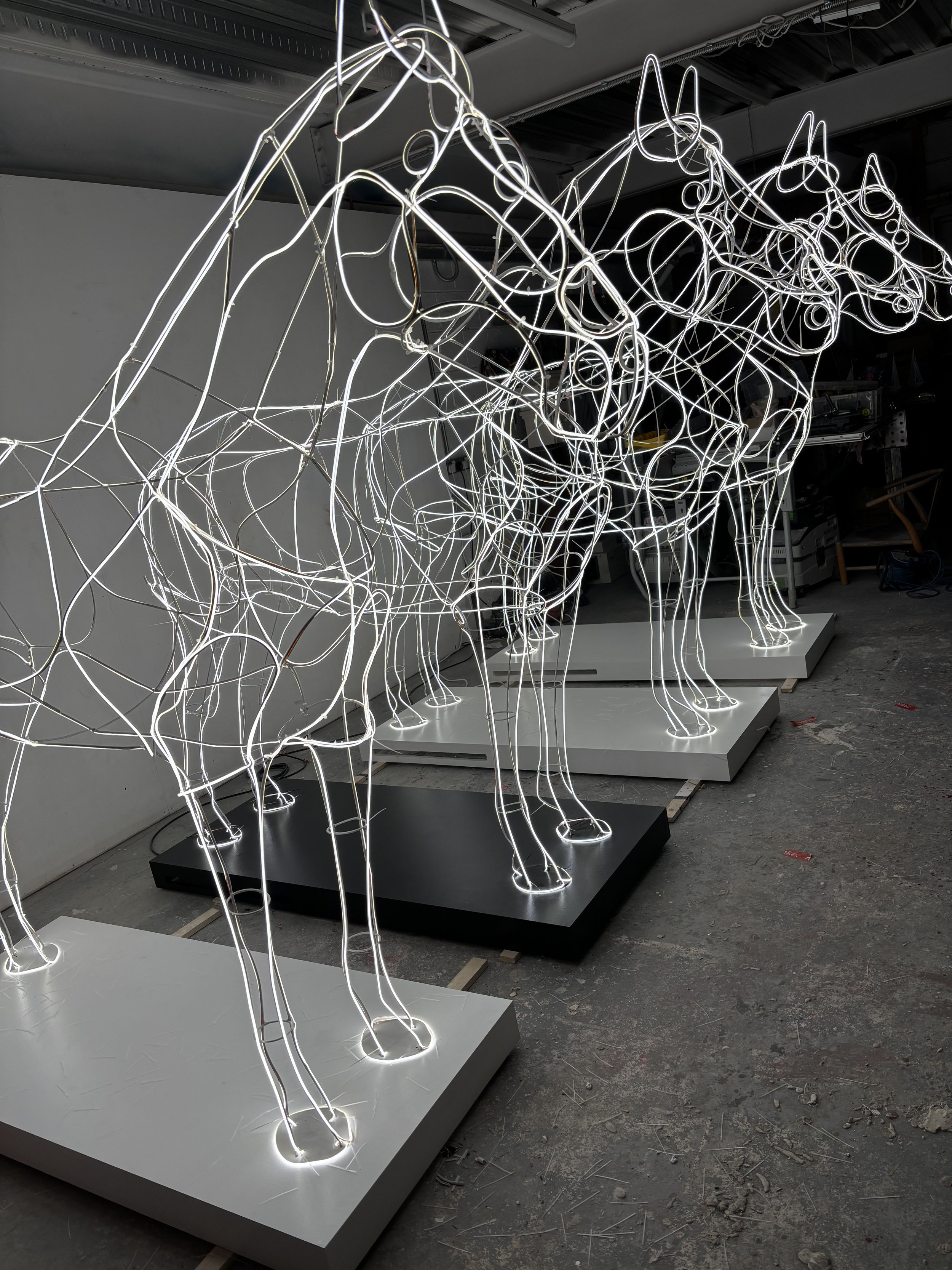 Shipped off just before Christmas, these horse sculptures are Asia bound, going to Taiwan, China, Singapore and Hong Kong COS stores. Great art fabrication project using a variety of skills including mild steel welding, electrical wiring, wood working plinths and spray paint finishes.